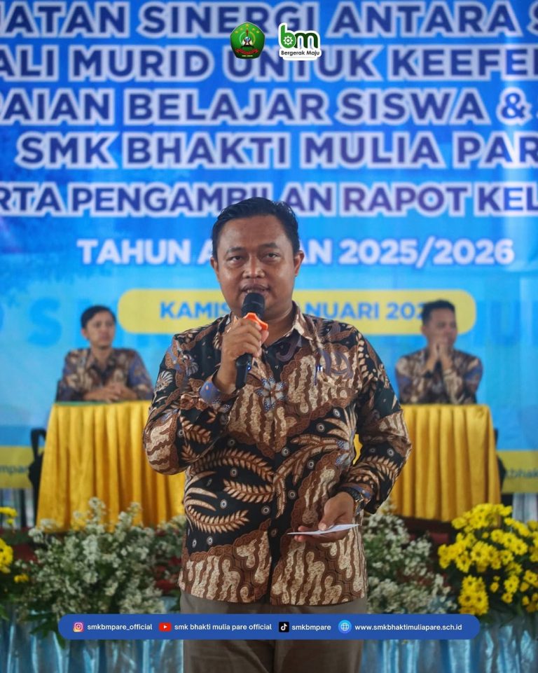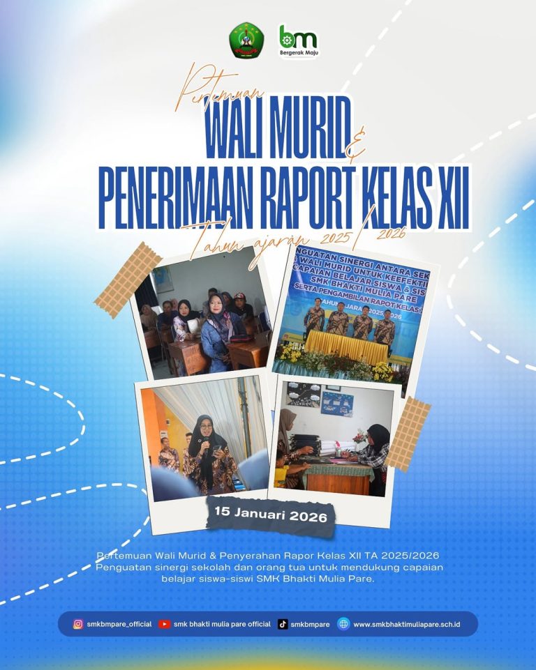 Dalam rangka penguatan sinergi antara sekolah dan wali murid guna meningkatkan keefektifan capaian belajar peserta didik, SMK Bhakti Mulia Pare menyelenggarakan pertemuan wali murid sekaligus pengambilan rapor kelas XII Tahun Ajaran 2025/2026.